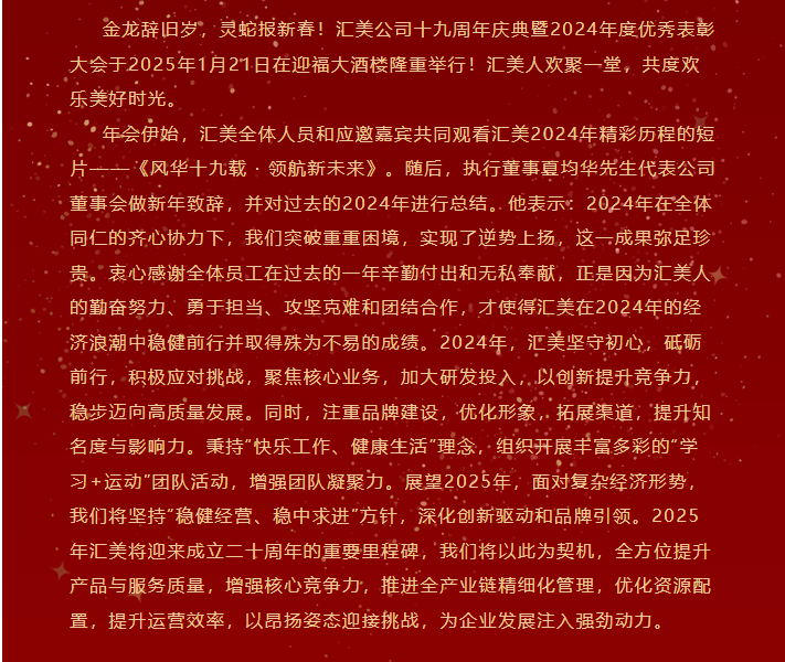 新突破 · 向未來丨匯美公司十九周年慶典暨2024年度優(yōu)秀表彰大會
