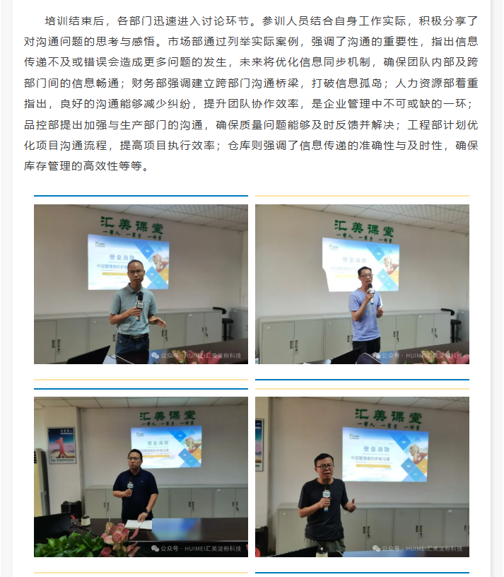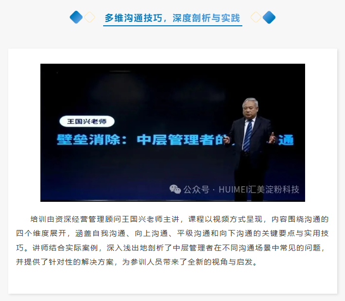 匯美組織開(kāi)展《壁壘消除:中層管理者的多維溝通》專(zhuān)項(xiàng)培訓(xùn) HUIMEI匯美淀粉科技 2025年05月14日 17:06 廣東
