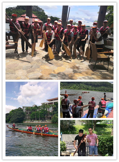 碧湖之畔,陣陣林風驅走炎炎夏日帶來的暑熱,在拓展基地李教練的帶領下,我們將開展一場繼承和弘揚民族優(yōu)秀體育文化的龍舟競賽,然而這對從未參加過龍舟訓練的匯美黨員們著實是一項嚴峻的考驗!從龍舟競賽組隊到隊員的職責分配,從如何揮漿擊水到如何掌舵競渡,教練認真講解,隊員們仔細聆聽并在心里暗自揣摩,經(jīng)過半個小時的培訓學習,兩組參加競賽的隊員們便躍躍欲試、信心滿滿。隨著教練一聲哨響,兩方槳手們便聽令而動、揮橈劃槳,作為一隊之長的鼓手一邊敲鼓把握劃槳節(jié)奏,一邊吶喊為隊員加油。鼓聲、加油聲此起彼伏,使原本平靜的湖面頓時熱鬧起來。隊員們在吶喊中奮楫擊水、舵手穩(wěn)立舟尾把舵定航、龍舟在碧波中破浪前行......龍舟競賽這項多人體育運動所蘊含的齊心協(xié)力和團隊精神在此刻表現(xiàn)得淋漓盡致,匯美支部的黨員們也通過此次競賽深刻體會了共同參與、充分發(fā)揮個體特長以及團隊協(xié)作的重要性。